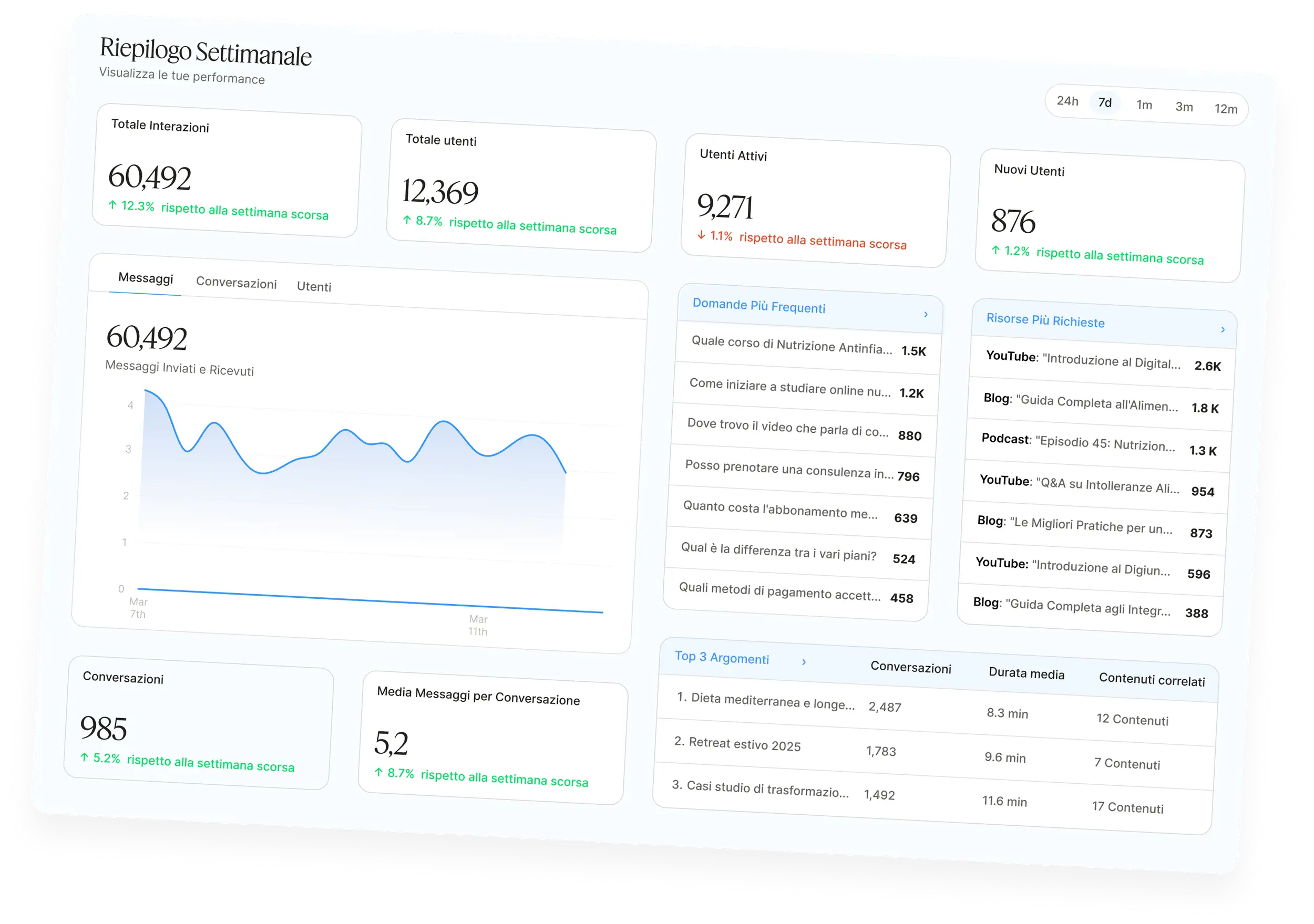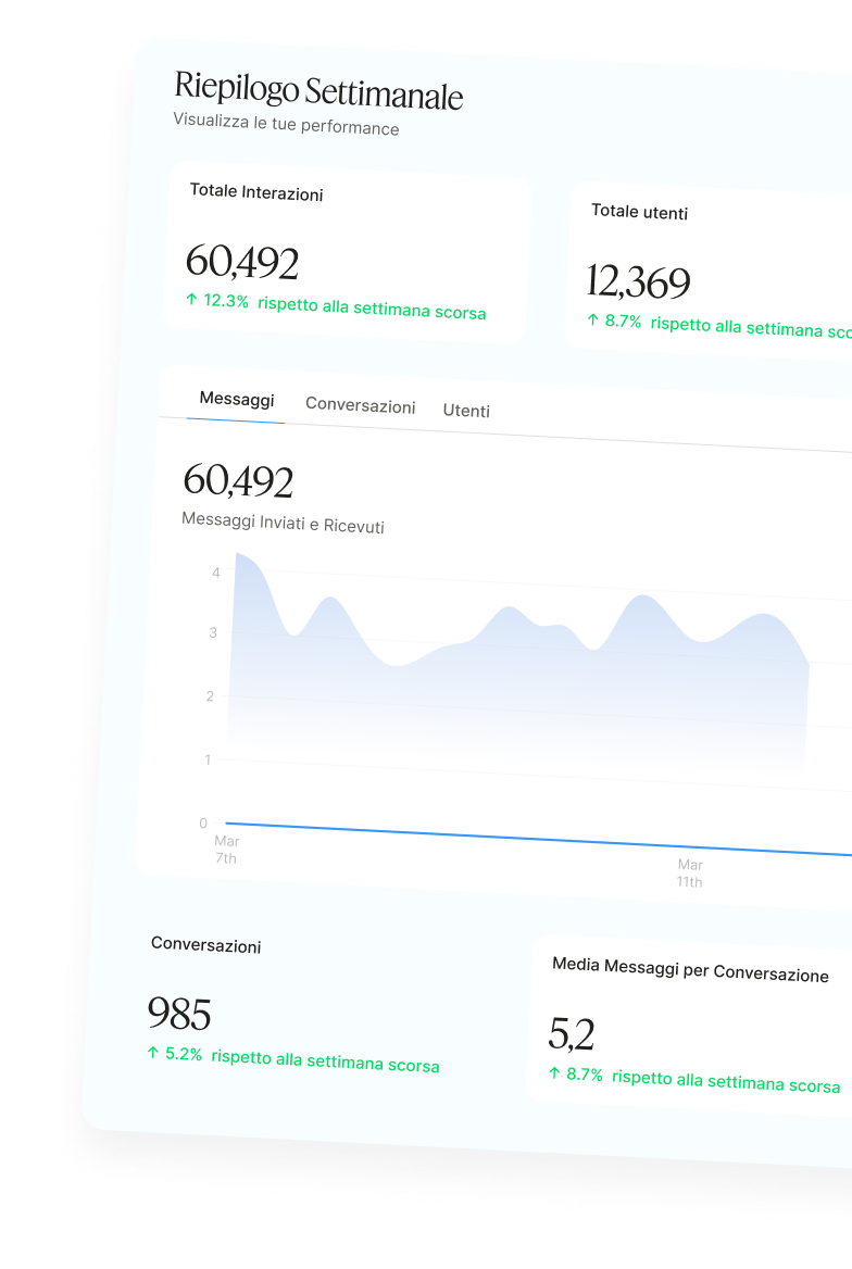 Apprende nuovi contenuti, si adatta, migliora — fornendo ai tuoi follower risposte sempre più rilevanti, che evolvono insieme alle loro esigenze.